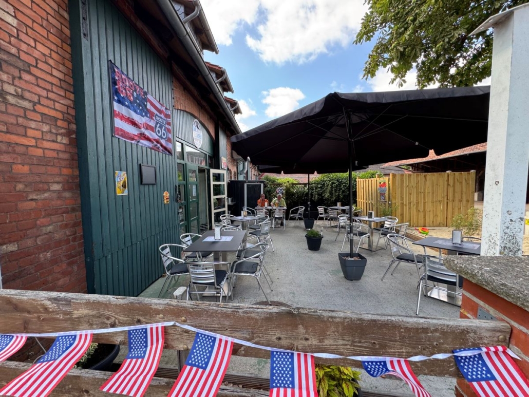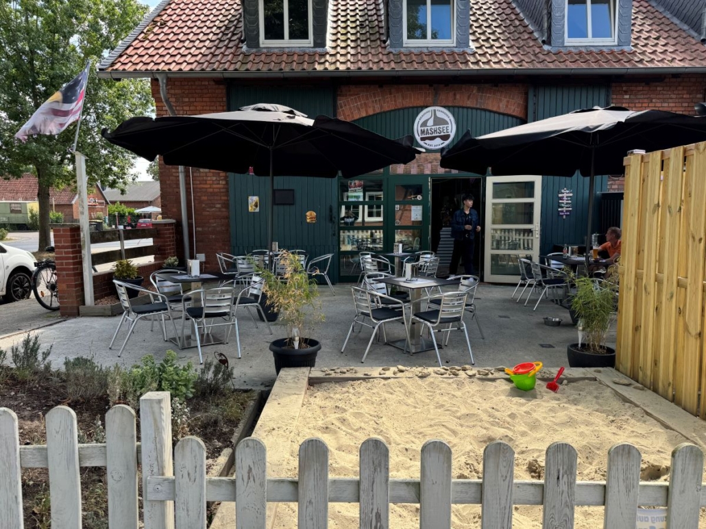 Hunde dürfen leider nicht mit in den Gastraum, auf die Terrasse aber schon!